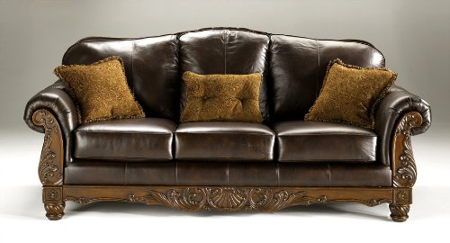 Subtle back shaping, plush roll arms, boxed seat cushions, and accent wood trim will add style and comfort to any family room environment. Smoother leather surface offers a soft and supple hand. The leather has a tonal handwipe effect, which gives color depth and variation, adding beauty and character. Dimension: 95"W x 39"D x 42"H Matching loveseat, chaise, and accent chair are available and sold separately.