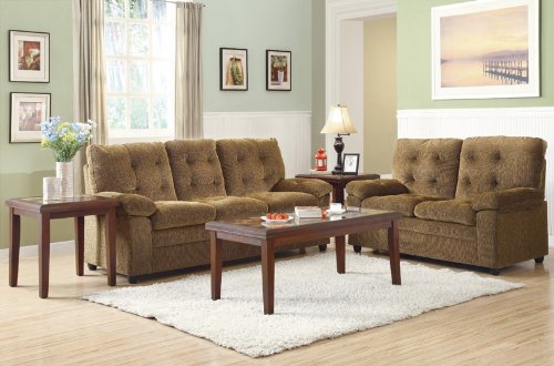 Sofa: 79.5" x 32,75" x 39.5", Loveseat: 60.25" x 32.75" x 39.5", Chair: 37.75" x 32.75" x 39.5", Available colors Golden Brown, Material Chenille fabric, Finished Wood finished legs, Price included 1 Sofa + 1 Loveseat + 1 Chair