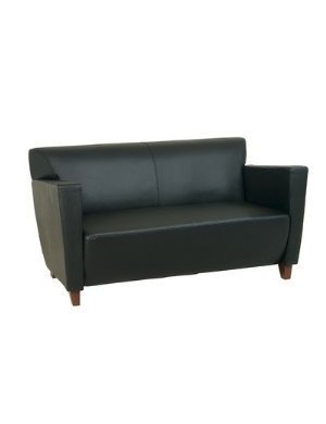 The Leather Love Seat features a thickly-padded seat and back in addition to a beautiful cherry finish on the legs. Whether you are furnishing for comfort or to be decorative, this elegant love seat is sure to be an ideal piece in your home décor! Available in Black or Taupe.Series Lounge SeatingFeature Type Height 30.75 in.Feature Type Width 33.5 in.Feature Type Length 58 in.Depth 20Material Leather, WoodAssembly YesStyle ModernColor BlackFinish BlackBlack LeatherColor Black/Cherry Finish