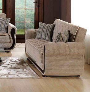 Create the living area you always desired with the rich traditional style of the Argos Collection. This collection features tufted plush padding, a curvy contour, and is masterfully applied espresso-colored detailing.Superior frame construction. Practically effortless operating mechanism. Rust and corrosion resistant galvanized mechanism and fitting parts. Steel innerspring coils with wrapped foam fill. Contemporary upholstery with exclusive tailoring and fine detailing. Minimal assembly require