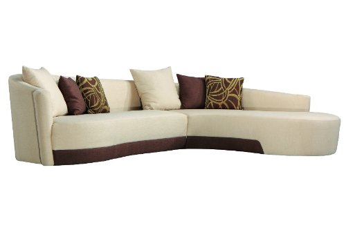 Oasis Modern Two-Tone Sectional Sofa by Armen Living Suave lines and a sophisticated but playful mood combine to give the Oasis Sectional a classically mod Hollywood aesthetic for your loft, town home, or condo. Celebrate any room you decorate - and your personal sense of style - with this fun and fashionable sectional. Features: Classic Mod Style Assorted Throw-Pillows Included Two-Tone Cream Fabric Upholstery Fire Retardant Foam Cushions Solid Hardwood Frame Assembly Required Ships Via
